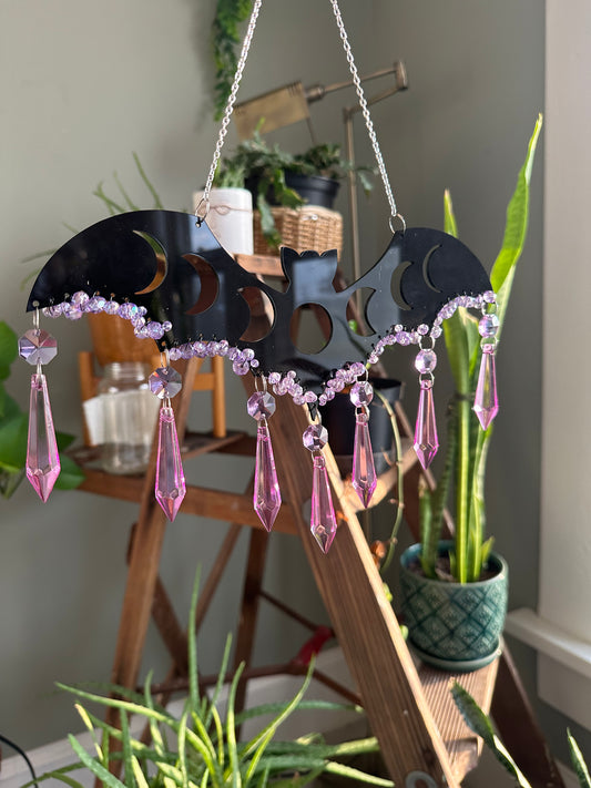 Bat with Moon Phases and Glass Crystals