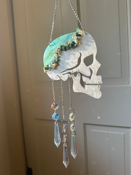 Moss Agate Skull Suncatcher/Wall Hanging