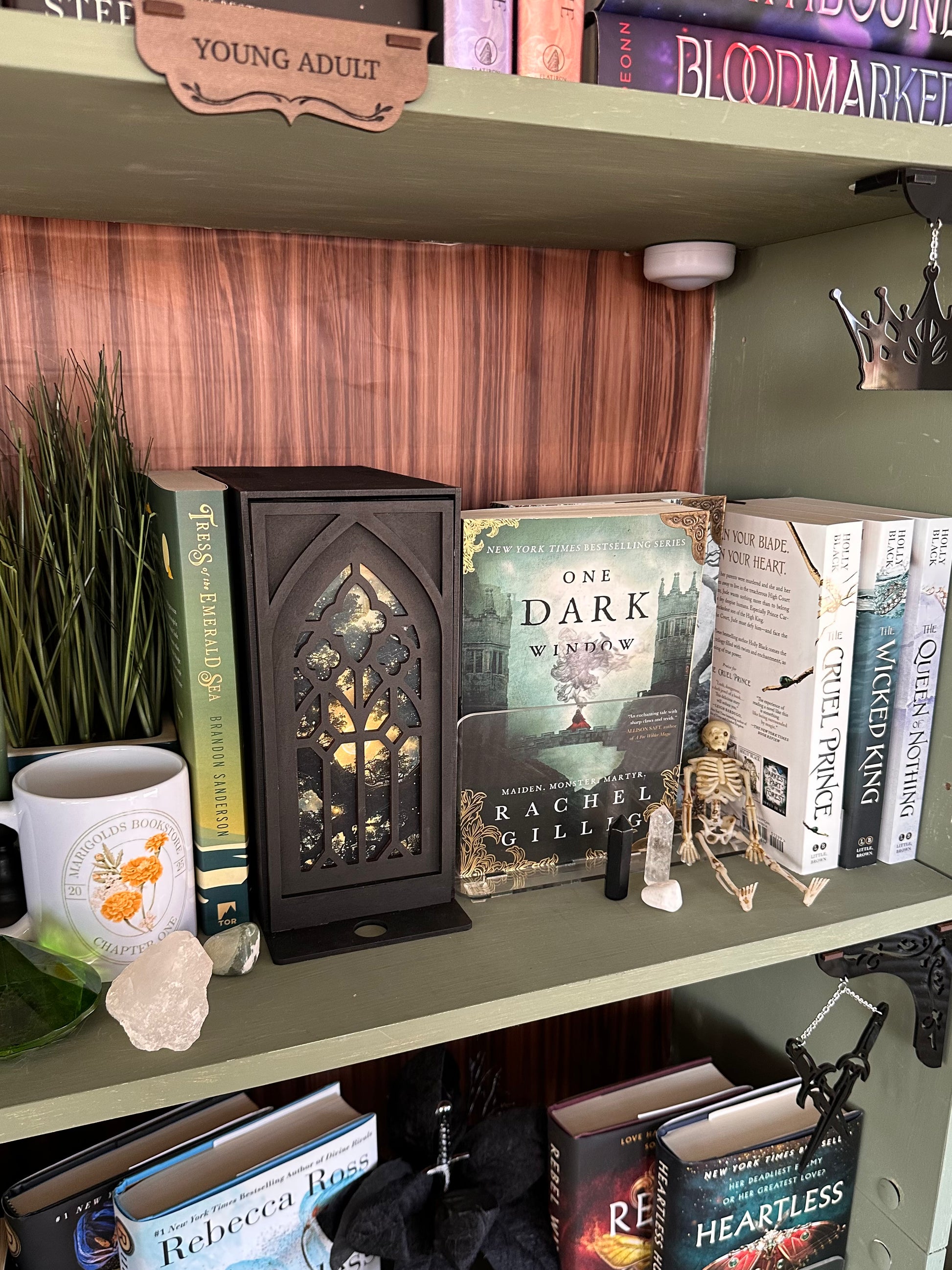 The Arched Window Storage Nook is the perfect solution for storing your bookish accessories such as page clicker, book light, charger, highlighters, pens, annotation tabs, and bookmarks- in various mediums like paper, chain and even the leatherette bookmark bracelets, all without them getting mixed up.